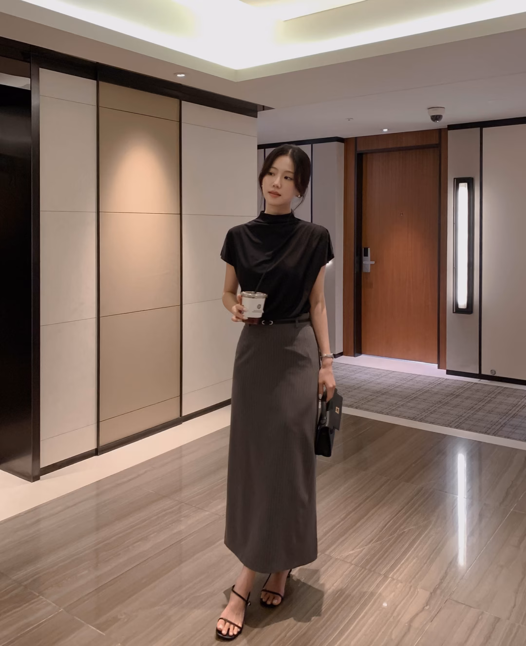 Chân váy xẻ tà là một lựa chọn tuyệt vời khi bạn muốn làm mới phong cách công sở mà vẫn giữ được sự tinh tế. Phần xẻ tà là chi tiết nhỏ nhưng có sức mạnh lớn trong việc tăng sự cuốn hút cho tổng thể trang phục. Không chỉ giúp bộ đồ trông thời thượng hơn, chân váy xẻ tà còn ‘ăn gian’ chiều cao hiệu quả, đặc biệt khi kết hợp cùng giày cao gót kiểu mule hoặc sandal quai mảnh. Đây là kiểu chân váy lý tưởng để chuyển từ mùa hè sang thu vì vẫn giữ được sự thoải mái nhưng có thêm điểm nhấn đầy cuốn hút.
