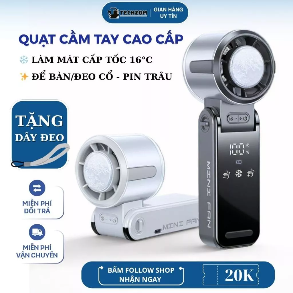 Bản Mới 2025 Quạt Mini Cầm Tay Thông Minh Đa Năng /Để Bàn/Đeo Cổ – Làm Mát Cấp Tốc 16°C, Yên Tĩnh, Pin Trâu – Tiện Lợi với giá chỉ 250.000 VND (giá gốc 302.500 VND) là một lựa chọn tuyệt vời. Sản phẩm này có khả năng làm mát cấp tốc 16°C, yên tĩnh, pin trâu và nhiều tính năng tiện lợi khác.